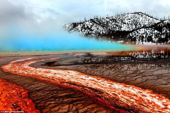 Smoke rises off rivers of fiery lava as it crashes into the sea (via Daredevil photographers brave boiling waters to capture the drama of searing-hot lava crashing into the seas off Hawaii | Mail Online)