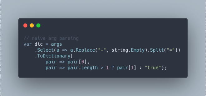 After understanding this part, It’s just a case of wiring some moving parts and I got it to work. The only “hand coded” part was the parsing of commandline arguments, which was done very naively.