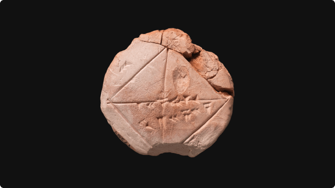 This clay tablet from 1800-1600 BC shows that ancient Babylonians were able to approximate the square root of two with 99.9999% precision. These are numbers, written in Babylonian cuneiform numerals. They read as 1, 24, 51, and 10.
