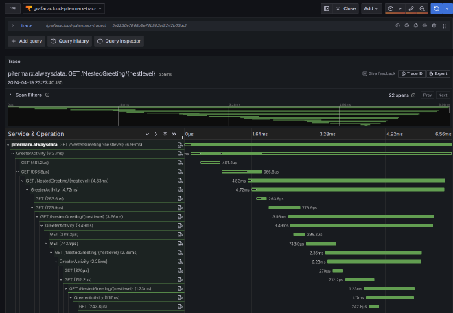 Following the pattern defined by Microsoft’s documentation on OpenTelemetry, I created the following endpoint, to see nested traces.